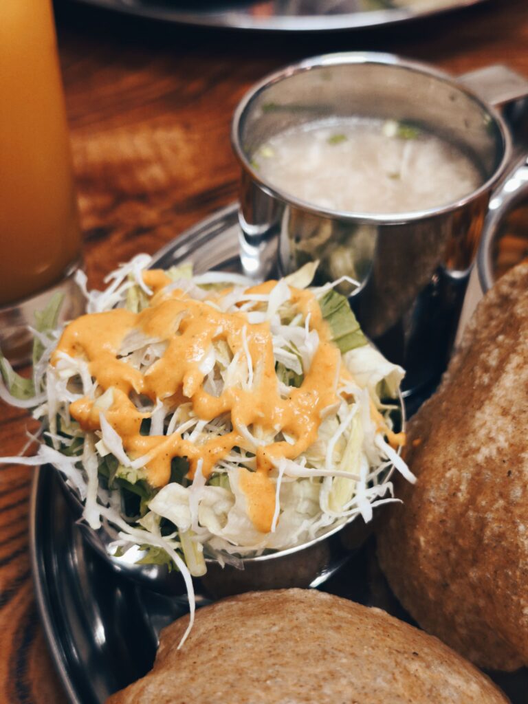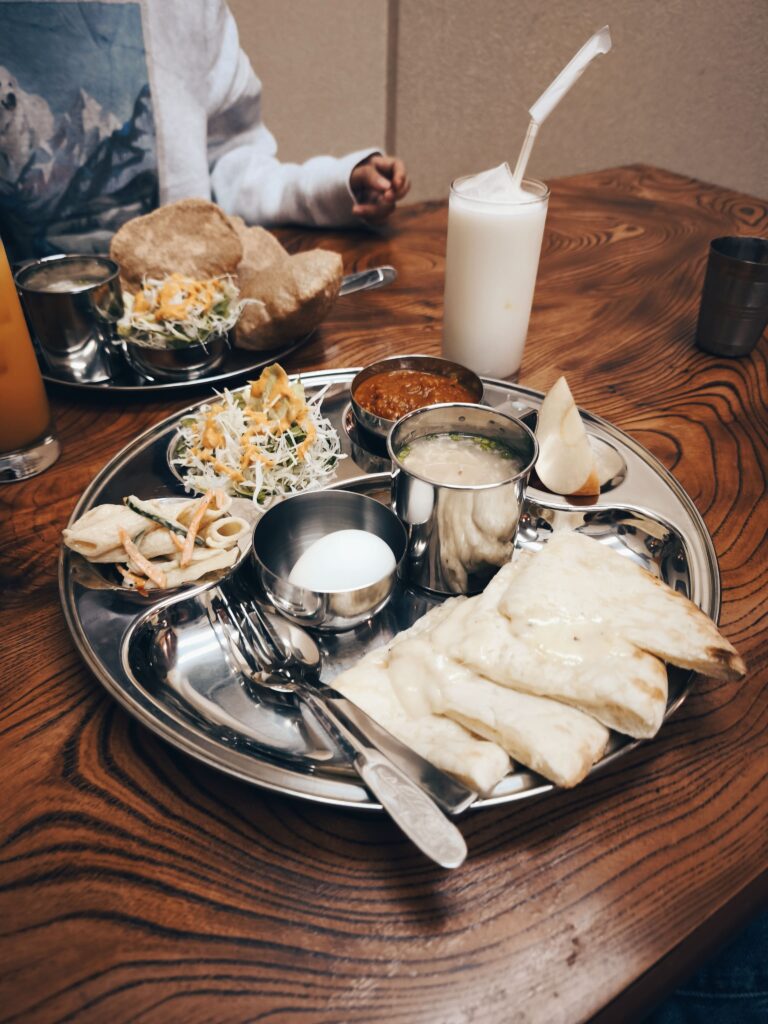 マンゴージュースとラッシーは氷が溶ける前提の濃いめの味で最後まで美味しくいただきました。