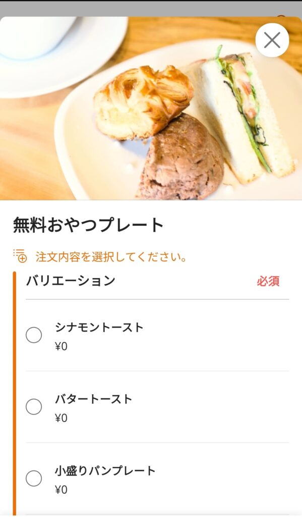モーニングはドリンクだけの場合には「無料おやつプレート」として提供されています。