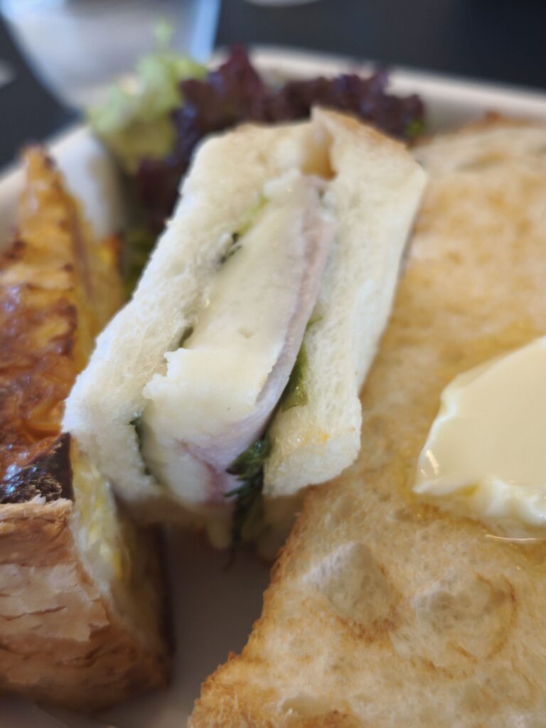 トーストの食パンはふわふわもちもちの食感で、5枚切りくらいの厚みもあるので食べ応えがしっかりありました。